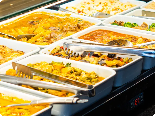 Nosso buffet está disponível todos os dias, oferecendo uma variedade de pratos deliciosos preparados com ingredientes frescos e selecionados.