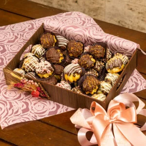 | Selecione o 5º sabor | Brigadeiro Tradicional, Brigadeiro Colorido, Brigadeiro Branco, Beijinho Tradicional, Beijinho c/ Coco Queimado, Dois amores, Cajuzinho, Bicho de Pé, Bombom Uva, Surpresa de Uva, Bombom de Coco, Mini Camafeu, Napolitano, Churros |