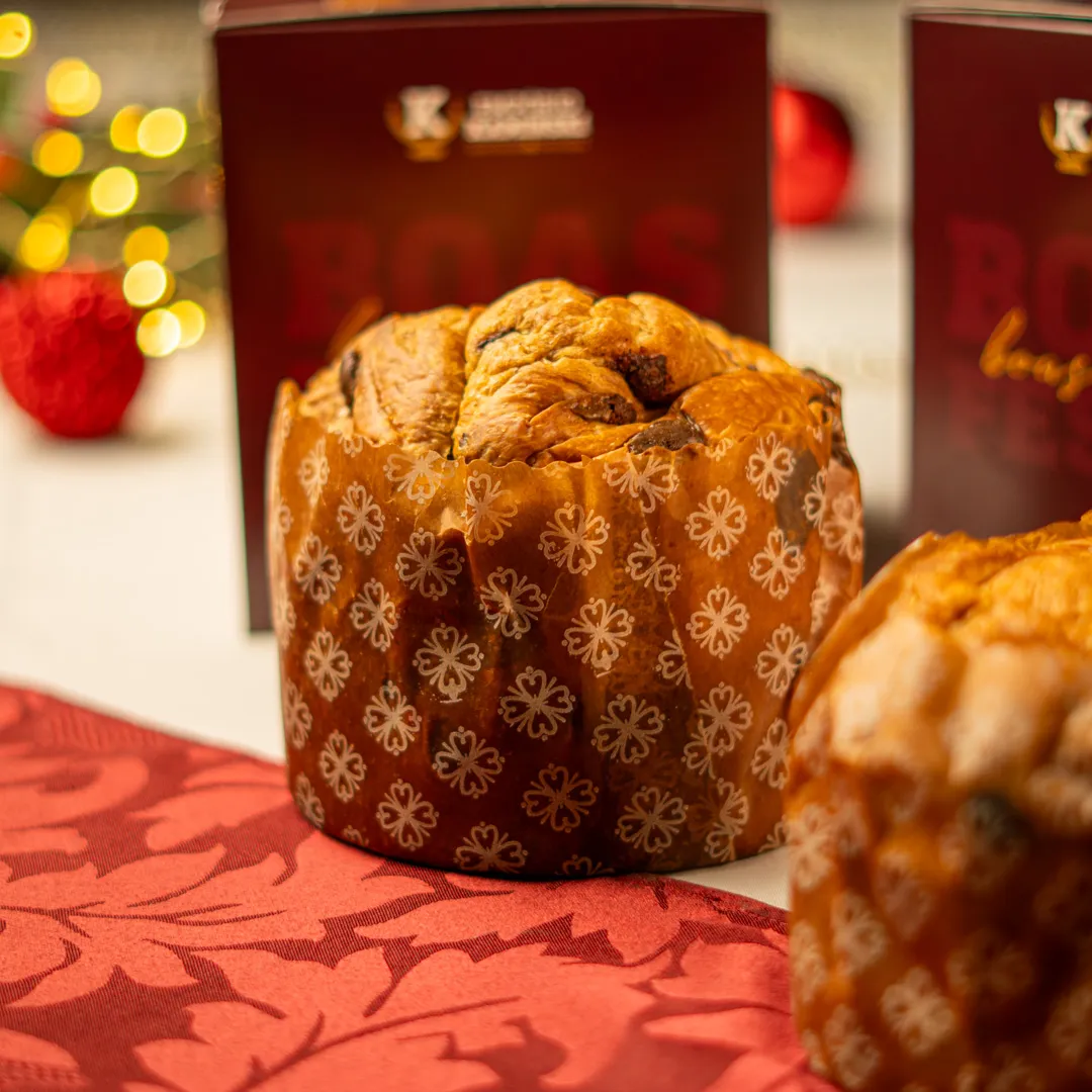 Massa fofinha e úmida com gotas de chocolate meio amargo. Tamanho grande de aproximadamente 450g. Embalado com uma caixa de presente especial.